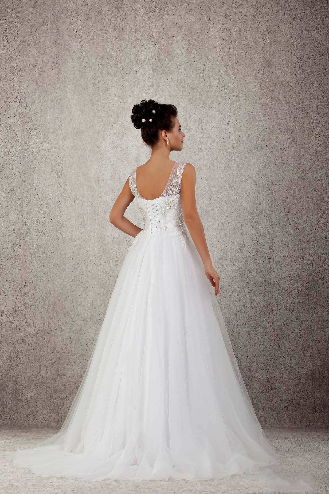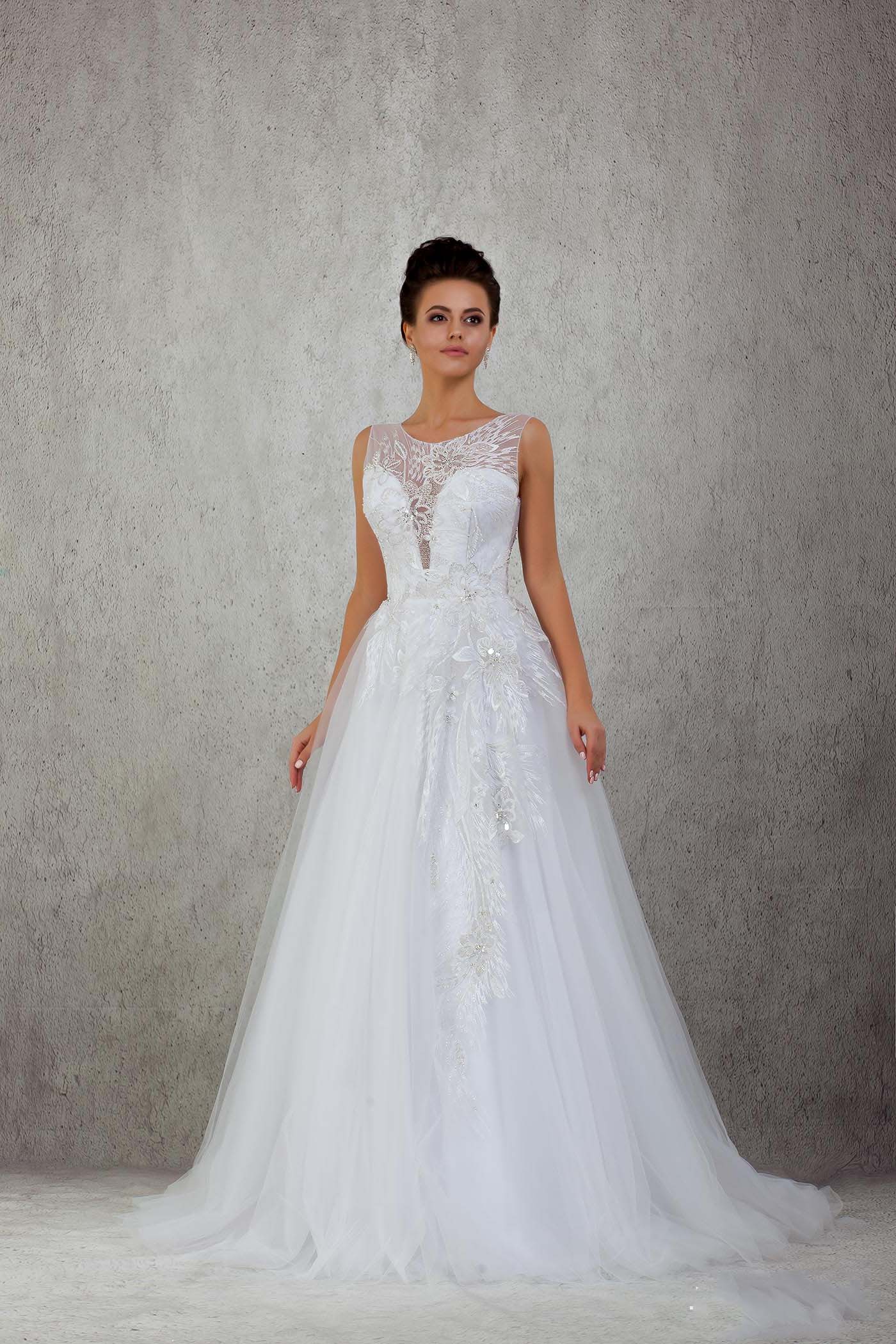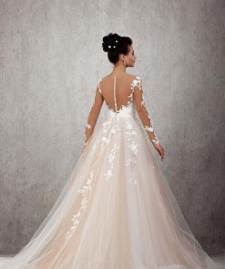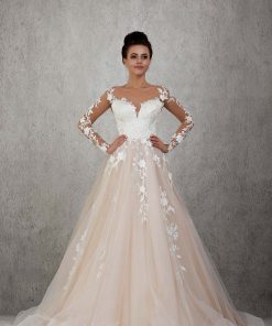 Emma is the perfect balance between embellishment and class. With her tulle skirt, lace elements, rhinestones, sequins, beads and pearls, she is dreamy, yet refined. She is lavish, yet reserved. She is perfect for you to wear as you walk down the aisle!